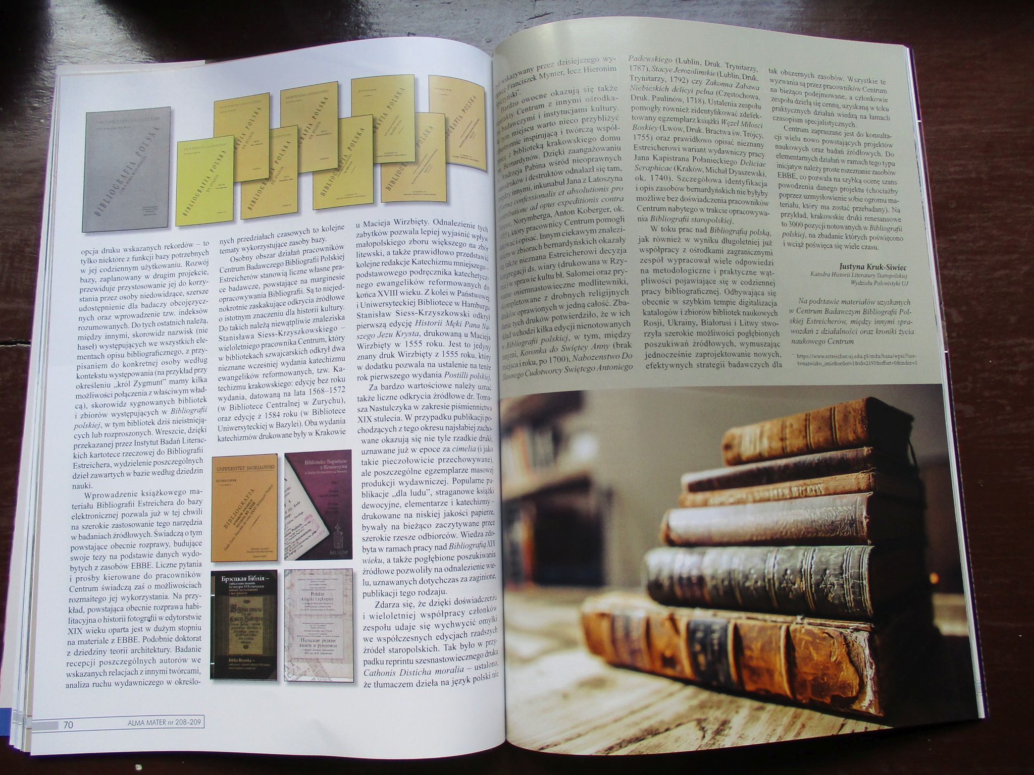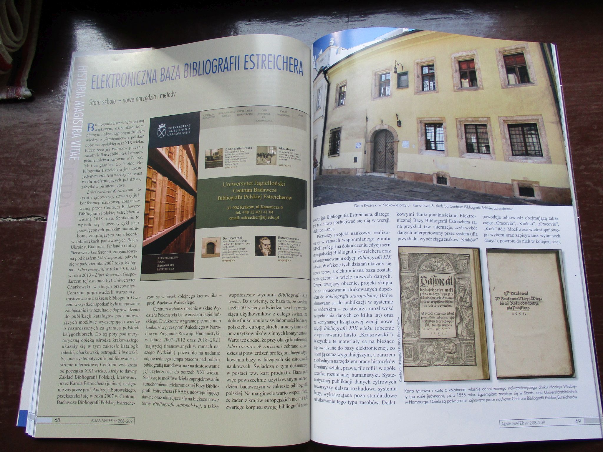 Alma Mater, prestiżowe czasopismo Uniwersytetu Jagiellońskiego, w swoim kwietniowo-majowym numerze (208-209) zamieściło obszerną informację na temat naszego Centrum, naszej Elektronicznej Bazy Bibliografii Estreichera i osiągnięć naukowych pod znamiennym tytułem: Stara szkoła – nowe narzędzia i metody.