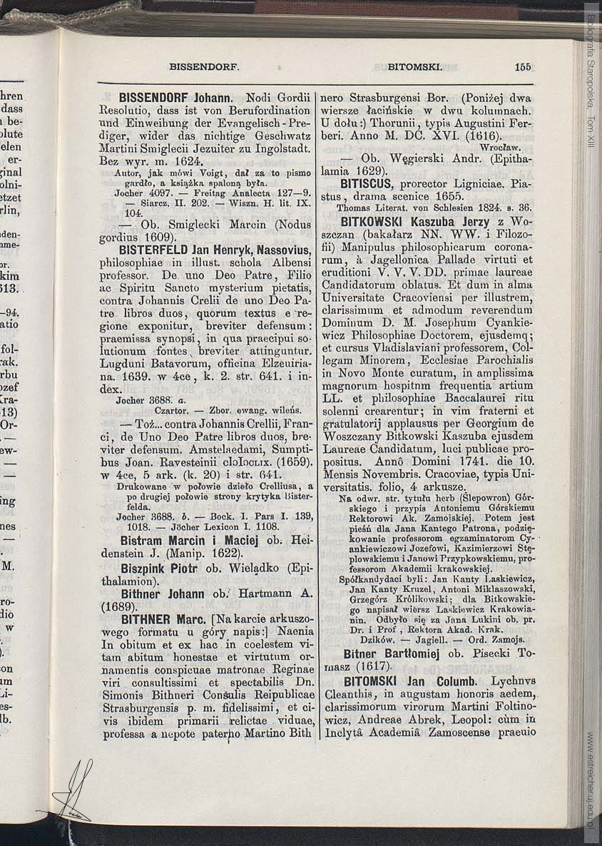 Nazwisko i imię: BISSENDORF Johann Tom zbioru ogólnego: 13 Tom serii: III 02 Stronica: 155 [otwórz stronicę w nowym oknie] << Poprzednie hasło | Następne hasło >> << Poprzednia stronica | Następna stronica >>