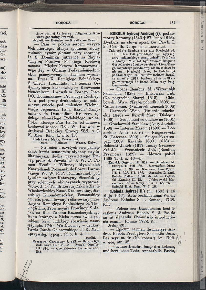 Nazwisko i imię: BOBOLA Jędrzej Andrzej (I) Tom zbioru ogólnego: 13 Tom serii: III 02 Stronica: 181 [otwórz stronicę w nowym oknie] << Poprzednie hasło | Następne hasło >> << Poprzednia stronica | Następna stronica >>