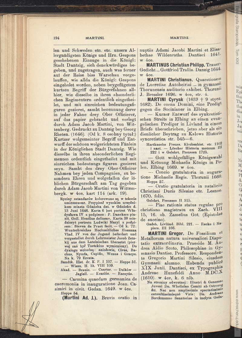 Nazwisko i imię: MARTINI Gregor Tom zbioru ogólnego: 22 Tom serii: III 11 Stronica: 194 [otwórz stronicę w nowym oknie] << Poprzednie hasło | Następne hasło >> << Poprzednia stronica | Następna stronica >>