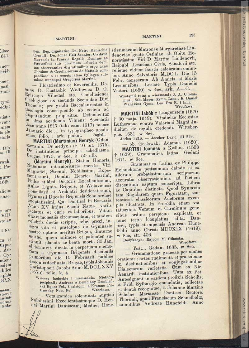 Nazwisko i imię: MARTINI Joannes Tom zbioru ogólnego: 22 Tom serii: III 11 Stronica: 195 [otwórz stronicę w nowym oknie] << Poprzednie hasło | Następne hasło >> << Poprzednia stronica | Następna stronica >>