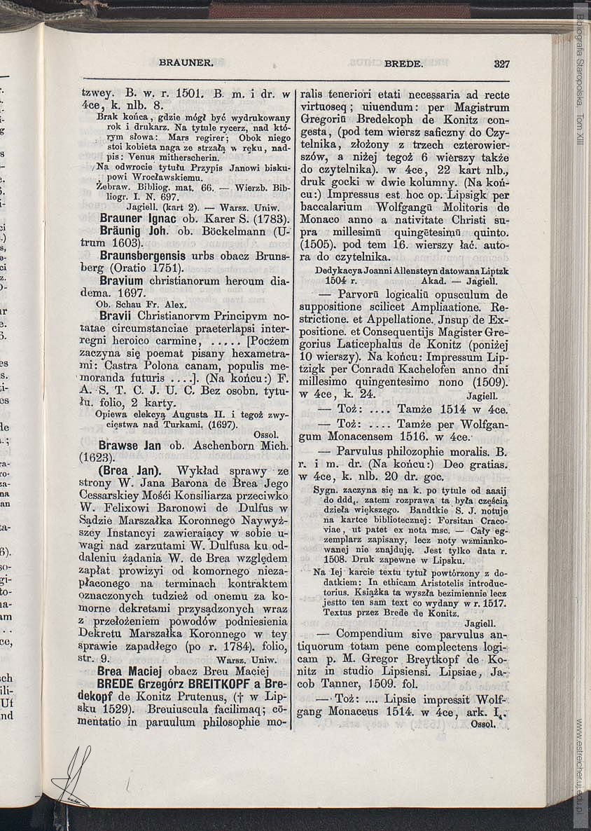 Nazwisko i imię: BREDE Grzegórz BREITKOPF a Bredekopf de Konitz Prutenus {BREITKOPF Gregor} Tom zbioru ogólnego: 13 Tom serii: III 02 Stronica: 327 [otwórz stronicę w nowym oknie] << Poprzednie hasło | Następne hasło >> << Poprzednia stronica | Następna stronica >>