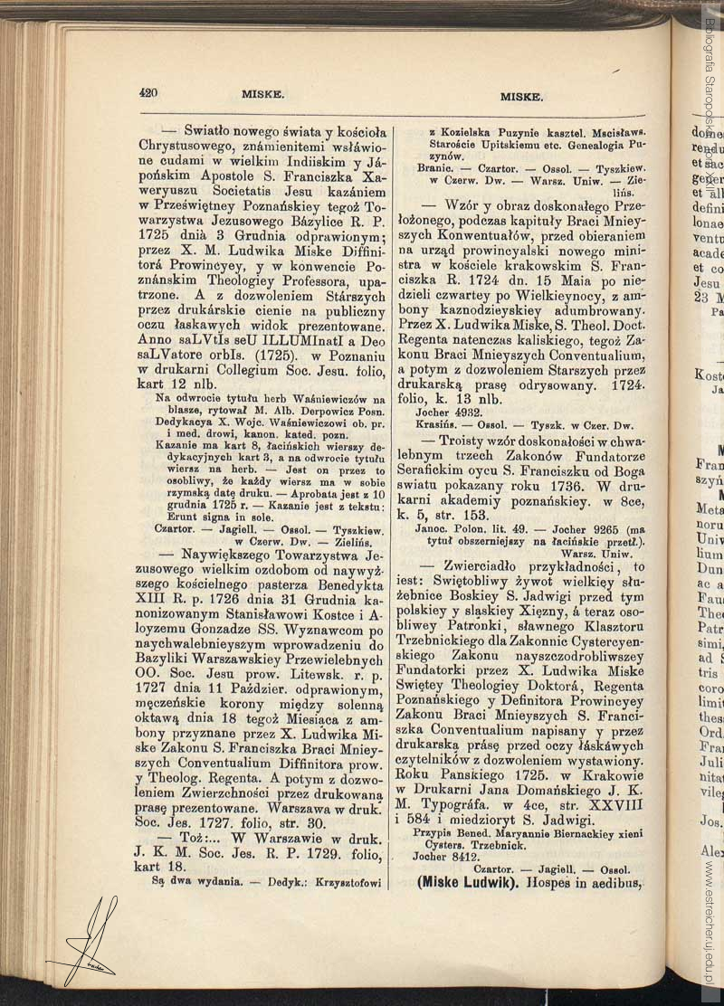Nazwisko i imię: (Miske Ludwik) Tom zbioru ogólnego: 22 Tom serii: III 11 Stronica: 420 [otwórz stronicę w nowym oknie] << Poprzednie hasło | Następne hasło >> << Poprzednia stronica | Następna stronica >>