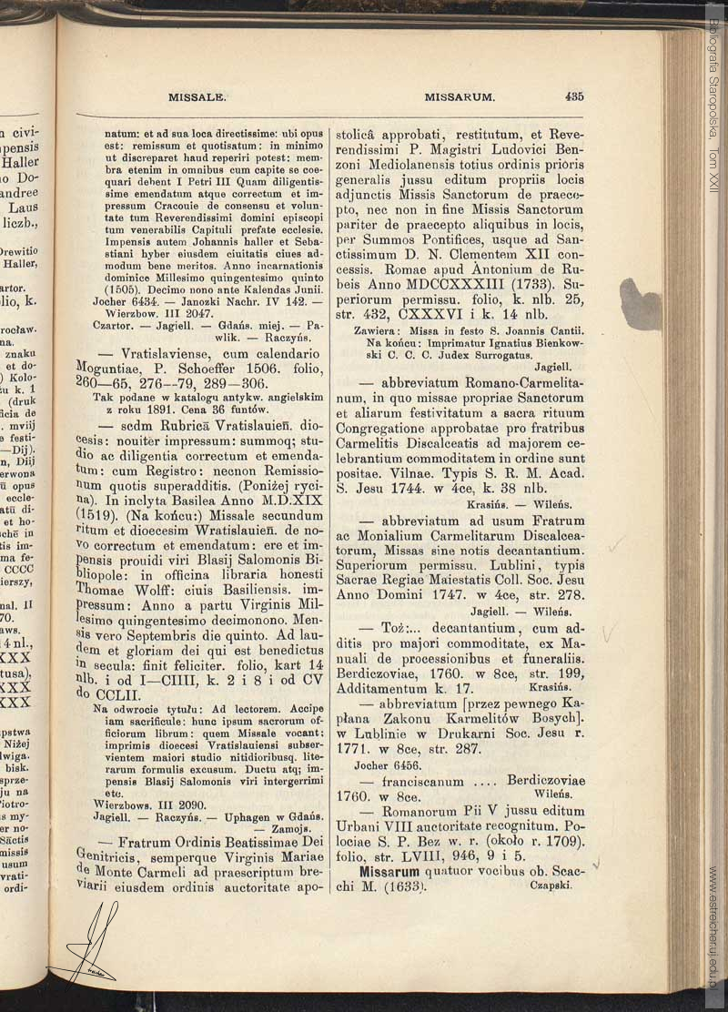 Nazwisko i imię: Missarum Tom zbioru ogólnego: 22 Tom serii: III 11 Stronica: 435 [otwórz stronicę w nowym oknie] << Poprzednie hasło | Następne hasło >> << Poprzednia stronica | Następna stronica >>