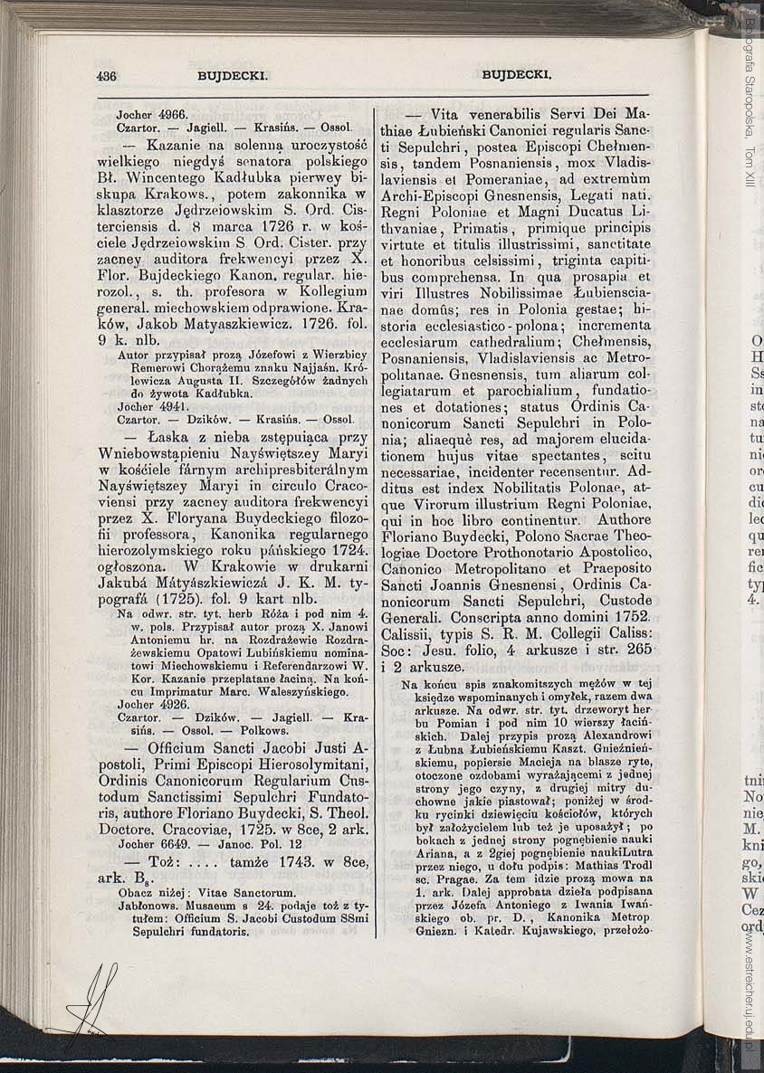 Nazwisko i imię: BUJDECKI Floryan Tom zbioru ogólnego: 13 Tom serii: III 02 Stronica: 435 [otwórz stronicę w nowym oknie] << Poprzednie hasło | Następne hasło >> << Poprzednia stronica | Następna stronica >>