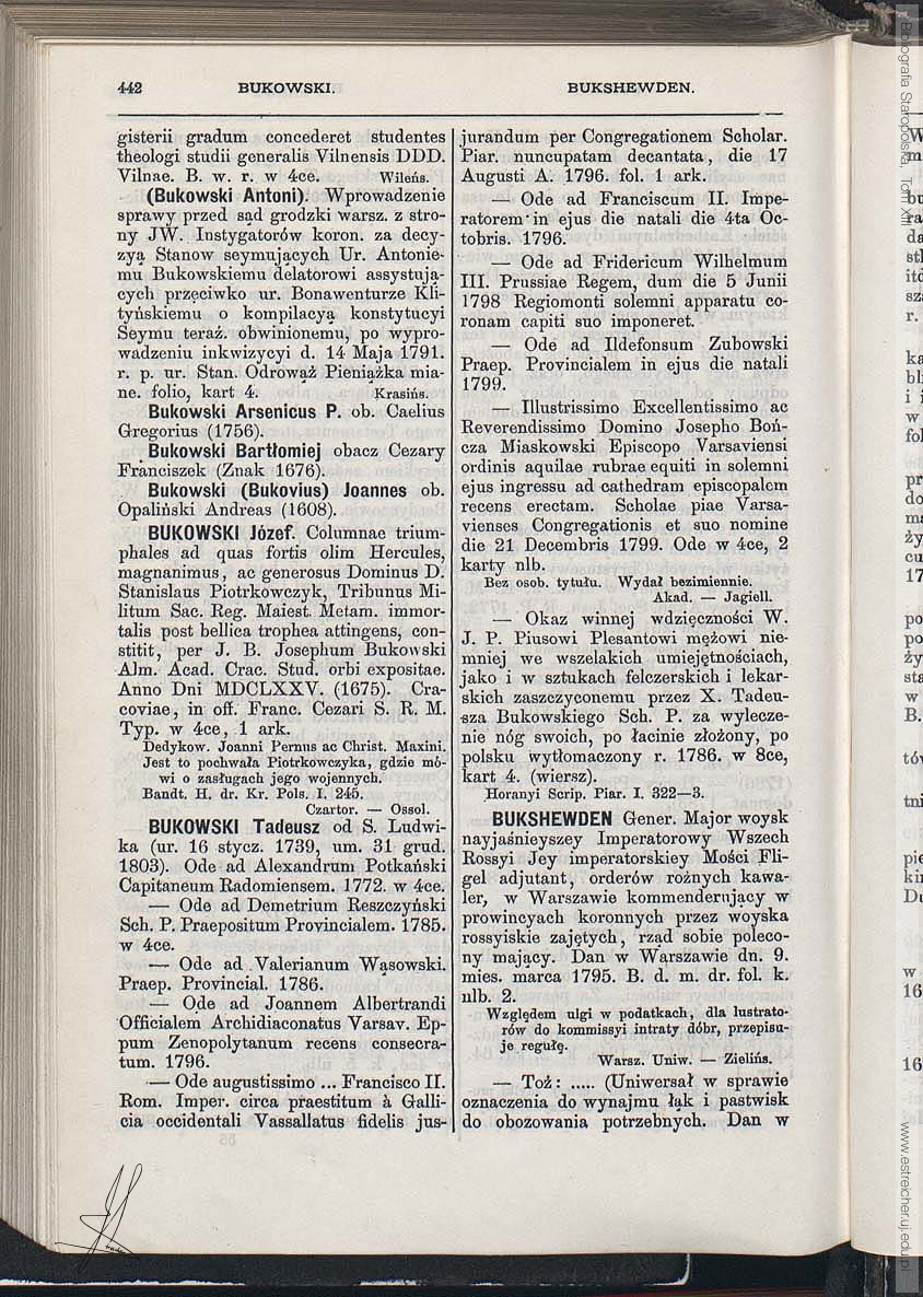 Nazwisko i imię: (Bukowski Antoni) Tom zbioru ogólnego: 13 Tom serii: III 02 Stronica: 442 [otwórz stronicę w nowym oknie] << Poprzednie hasło | Następne hasło >> << Poprzednia stronica | Następna stronica >>