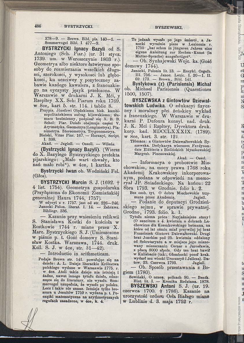 Nazwisko i imię: BYSTRZYCKI Ignacy Bazyli Tom zbioru ogólnego: 13 Tom serii: III 02 Stronica: 486 [otwórz stronicę w nowym oknie] << Poprzednie hasło | Następne hasło >> << Poprzednia stronica | Następna stronica >>