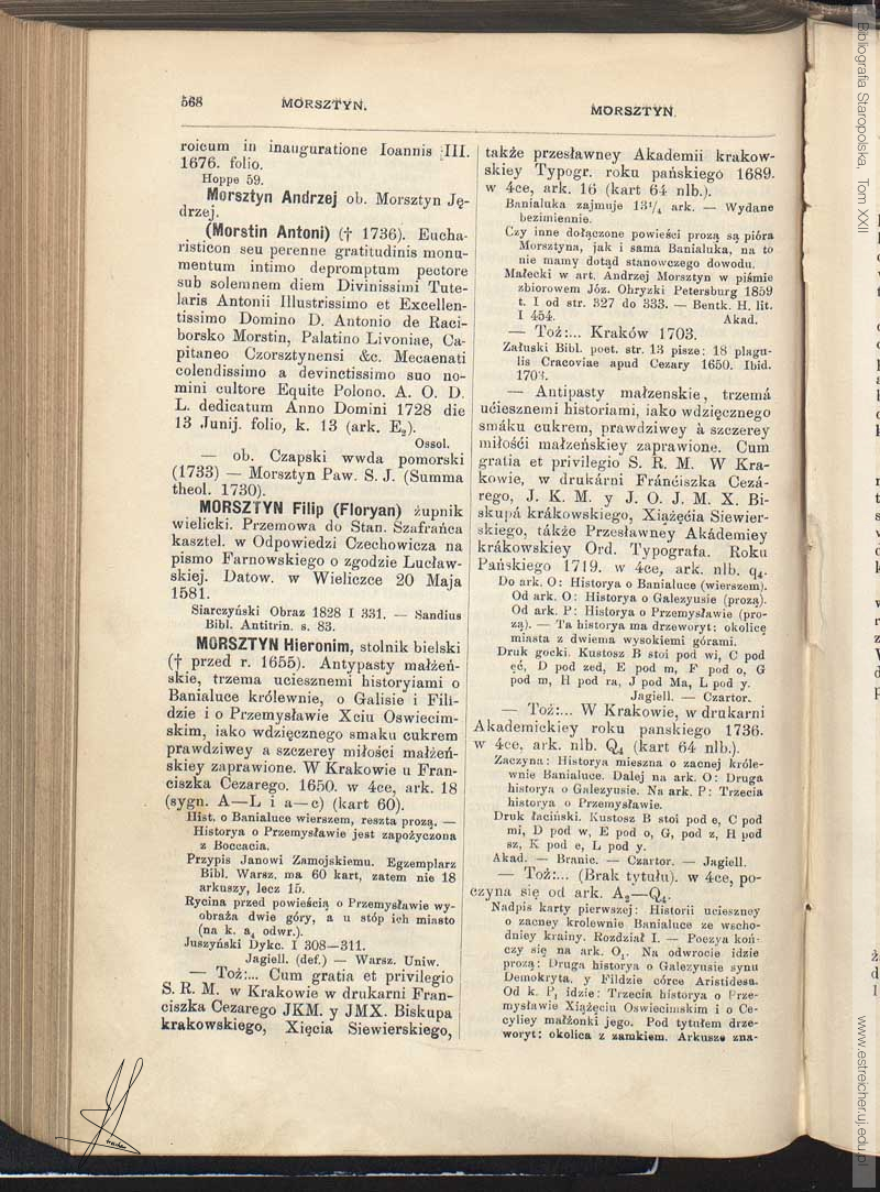 Nazwisko i imię: (Morstin Antoni) Tom zbioru ogólnego: 22 Tom serii: III 11 Stronica: 568 [otwórz stronicę w nowym oknie] << Poprzednie hasło | Następne hasło >> << Poprzednia stronica | Następna stronica >>
